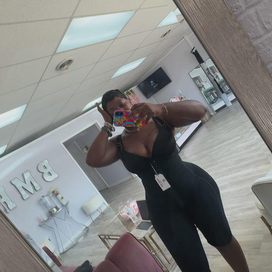 Super Compression High Back Seamless Faja with knee length. It has an opening with a zipper crotch for easy bathroom access. This faja also features 3 rows of hooks to help contour body. This is great for wearing long pants, jeans, and leggings or just thigh compression.